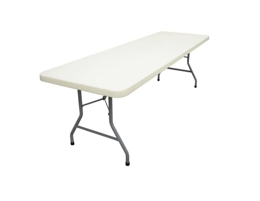 The 8' x 30" Rectangular Table delivers commercial-grade performance in a portable package. Built with a high-density polyethylene tabletop and powder-coated steel legs, this folding table resists stains, dents, and UV fade. It sets up in seconds and folds flat for compact storage. Perfect for events, rentals, classrooms, and home use. โ Strong. โ Lightweight. โ Easy to clean. ๐งผ