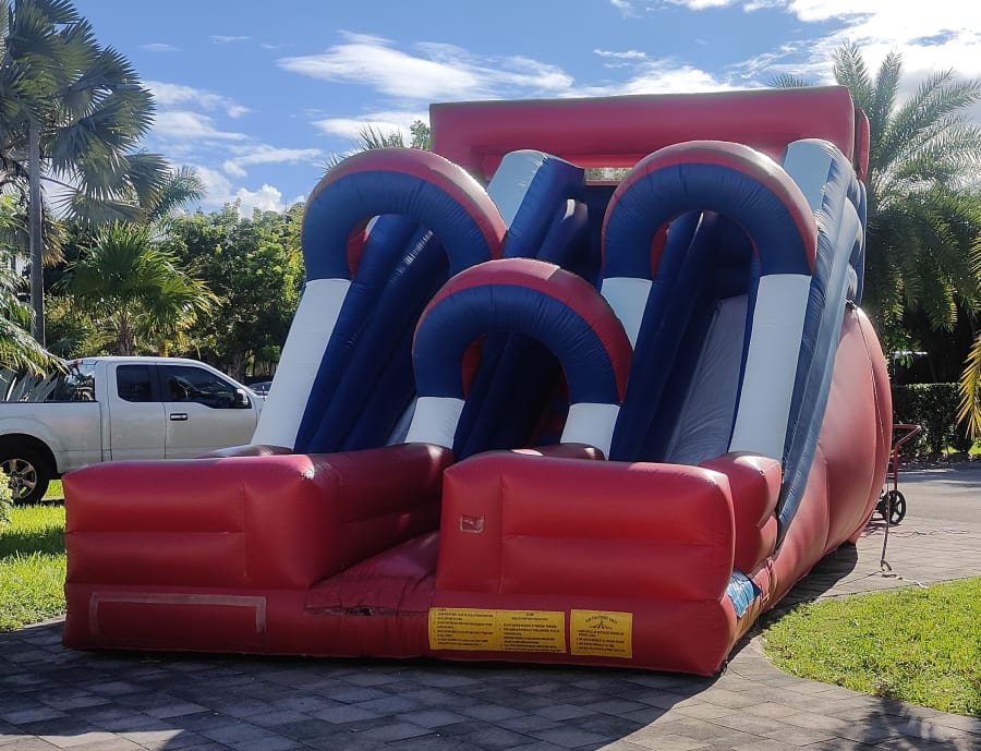 The 14 x 16 x 25 Kiddy Double Lane Slide Interactive Bouncer blends big fun with compact footprint. Fast-paced play. Two slides for parallel racing. Bright graphics and soft landings attract kids aged 3–12. Ideal for parties, fairs, and school events. ✅