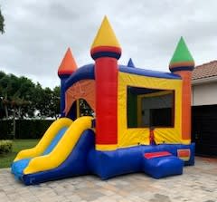 The 13W X 15L X 10H Kiddie Bouncer Combo delivers big fun for small kids. This colorful bounce house combines a roomy bouncing area with a safe slide and mesh walls for full visibility. Ideal for birthday parties, backyard gatherings, and daycare play. Durable vinyl and reinforced seams ensure long-lasting use. 🎉