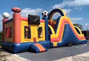 Bring big fun to your next event with the 13W X 46L X 18H Giant Sports Combo Bouncer. This high-capacity inflatable combines a roomy bounce area with sporty graphics and interactive play features. It’s built for safety. It’s built for excitement. Perfect for parties, school events, and community gatherings.