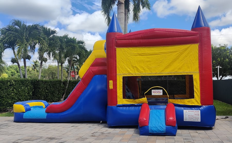 The 13W X 25L X 12H Castle w/Basketball Combo Bouncer combines a spacious bounce area, built-in basketball hoop, and castle-themed design. Ideal for backyard parties, school events, and rentals. Durable vinyl, high walls, and vibrant graphics deliver fun and safety for kids ages 3–12. Perfect for active play and group excitement.