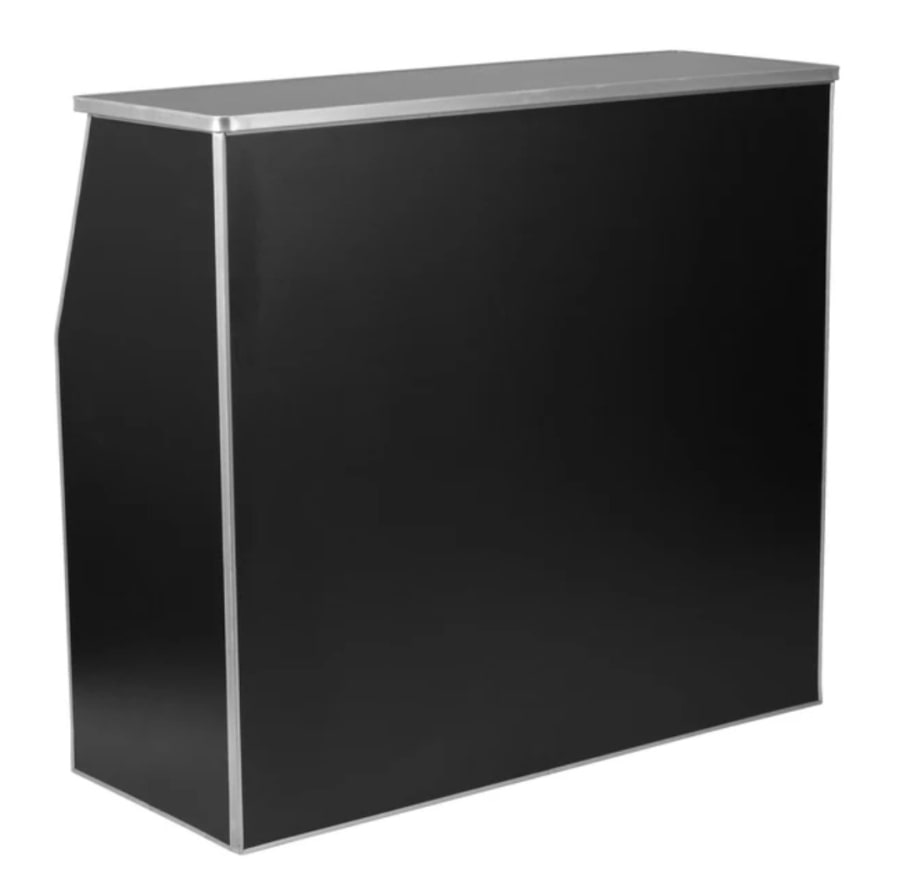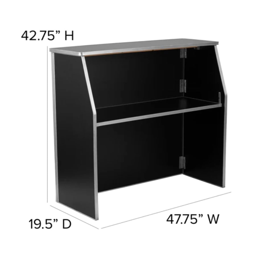 Compact. Stylish. Built for events. The 42.75H X 19.5D X 47.75W Event Black Bar delivers portable bar performance for parties, pop-ups, trade shows, and home entertaining. This black, professional-grade bar combines durability with clean lines. It sets up fast and packs down faster. Perfect for mobile bartenders, caterers, and hosts who need a reliable serve station. ✅