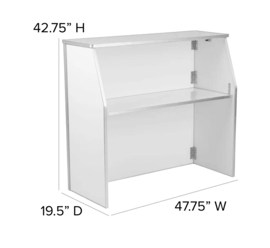42.75H X 19.5D X 47.75W Event White Bar — Clean, Compact, Ready to Serve 🍸