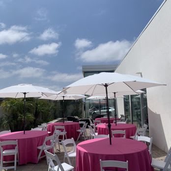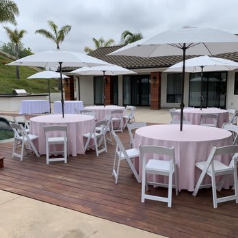 Umbrella & Table (includes linen) delivers a turnkey outdoor seating solution for events, patios, cafés, and backyard gatherings. This package pairs a durable table with a large weather-resistant umbrella and premium linen. Quick to set up and elegant in appearance, it protects guests from sun and light rain while elevating table presentation. Seating 8 to 10 (chairs separately, not included).
